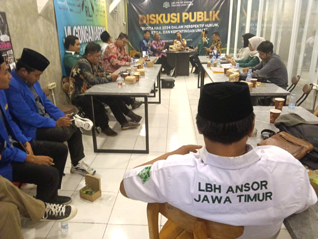 jatimnow.com - Lembaga Bantuan Hukum (LBH) Ansor Jawa Timur menggelar Diskusi Publik bertajuk "Kuota Haji 2024 dalam Perspektif Hukum, Etika, dan Kepercayaan Umat" di Rumah Literasi Digital (RLD) Surabaya, Kamis (22/1/2026).