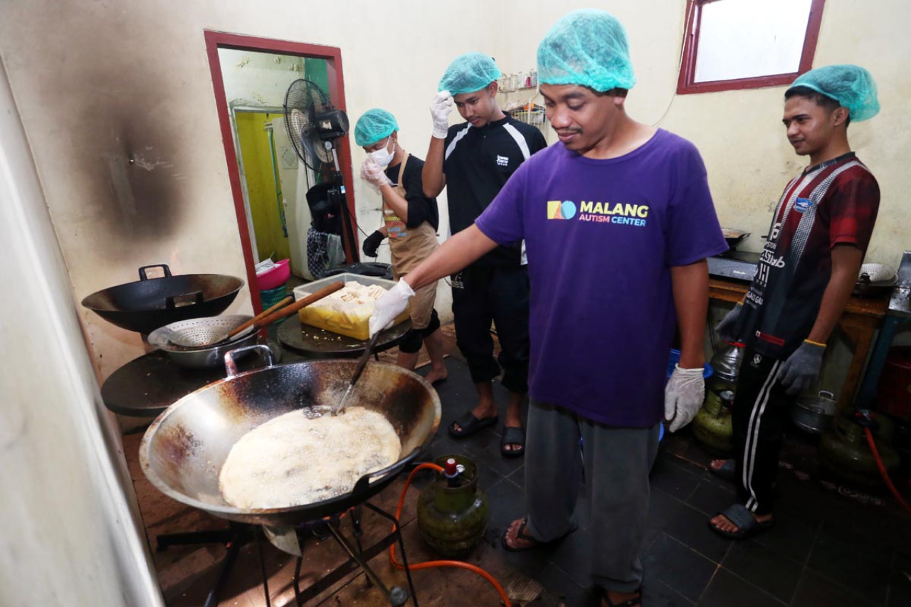 jatimnow.com - Di sebuah dapur produksi di kawasan Malang, aroma gurih lele dan tempe goreng menyeruak. Di sana, tangan-tangan yang biasanya sulit fokus, kini bergerak ritmis.