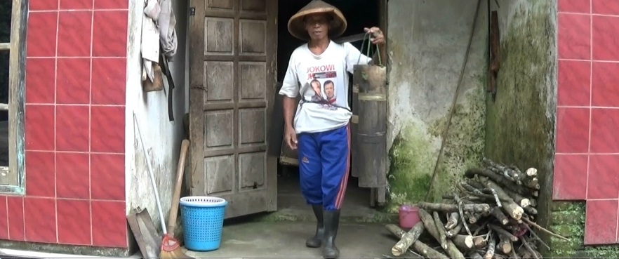 Setelah mengambil nira, Mbah Sirin kembali ke rumah dan hasilnya akan diberikan anaknya, Sutari untuk diproduksi menjadi gula aren.
