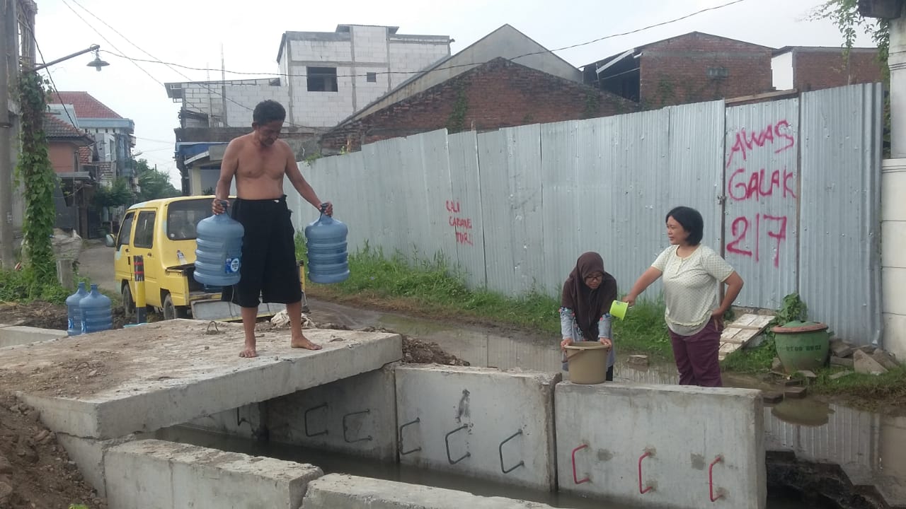 "Warga disini memanfaatkan dua saluran PDAM yang bocor itu untuk bisa dapat air bersih. Itu kalau ambil airnya harus antri biasanya pagi sama malam warga banyak antri," lanjutnya.
