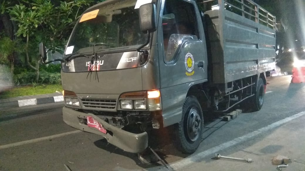 Pantauan jatimnow.com, truk sudah dievakuasi ke Mako Satpol PP, Jl Jaksa Agung Suprapto. Bumper truk ambrol. Pintu bak belakang penyok. Begitu pula, empat roda digembosi.