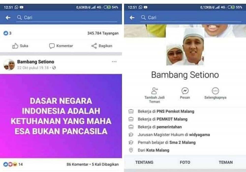 Sebelumnya, akun FB milik Bambang Setiono mengunggah beberapa postingan yang berisi kalimat tidak semestinya. Misalnya pada postingan yang diunggah pada tanggal 9 September lalu.