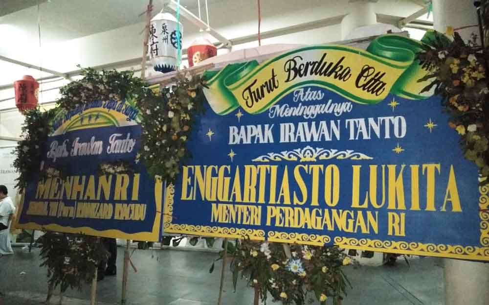 Selain itu, ratusan karangan bunga duka cita juga penuh sesak di Adi Yasa. Ucapan belasungkawa itu diantaranya dari pembantu Presiden Jokowi seperti Menteri Perdagangan Enggartiasto Lukita dan Menteri Pertahanan Jenderal TNI (Purn) Ryamizard Ryacudu. Kemudian ada mantan Panglima TNI (Purn) Gatot Nurmantio.