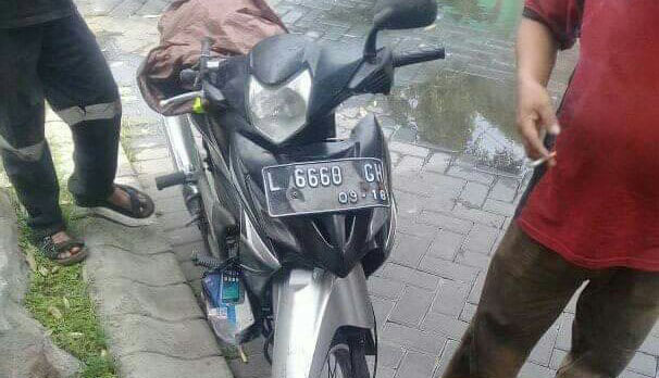 Sedangkan motor Honda Revo itu diamankan di Pos Satpam Green Mansion. Pria misterius tadi akhirnya diamankan warga pada saat ia masuk gang buntu.