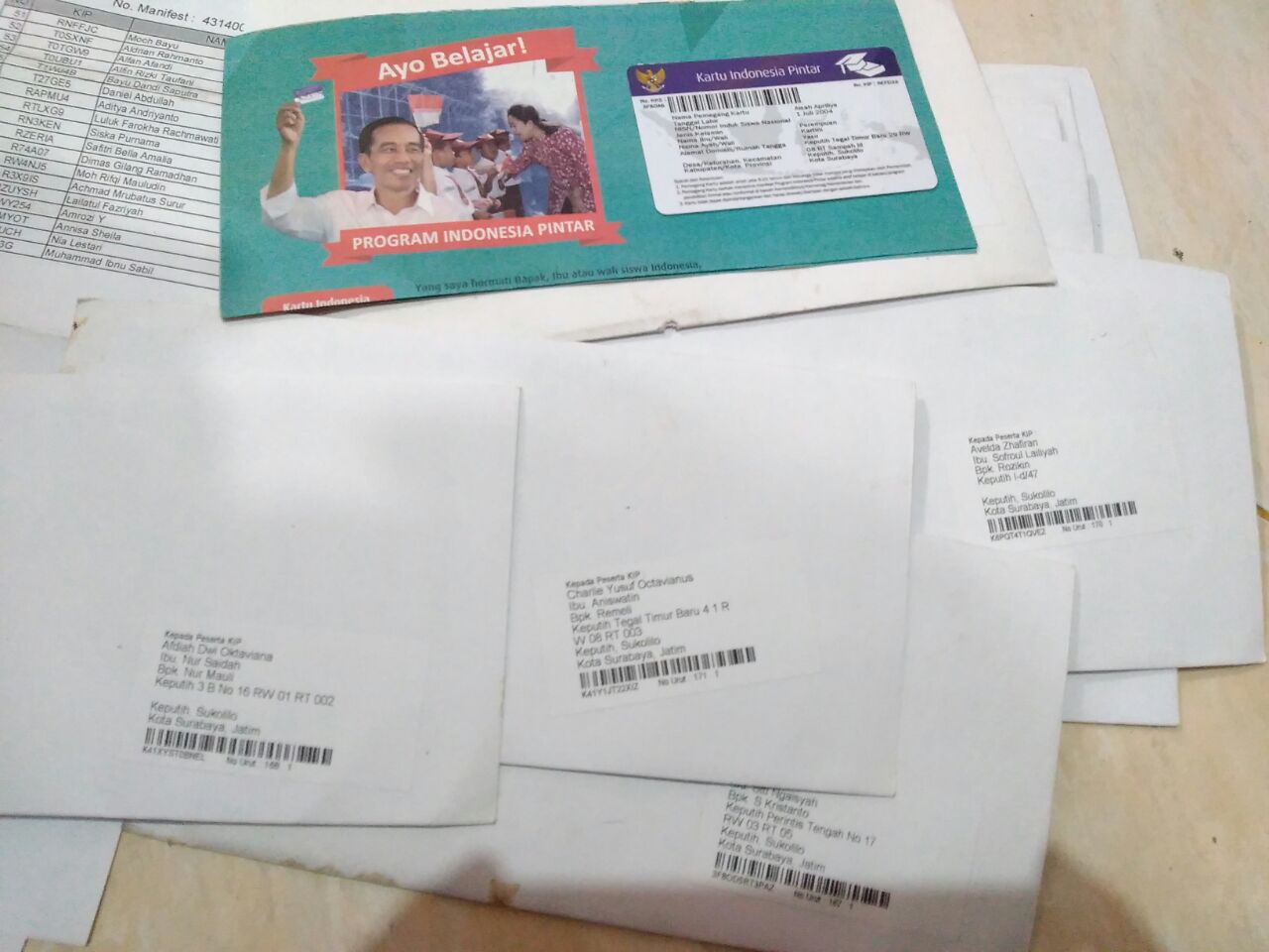 jatimnow.com - Temuan satu karung berisi ratusan Kartu Indonesia Pintar (KIP) di Nginden Jangkungan 1/20, Surabaya, Selasa (20/3/2018), menyedot perhatian banyak pihak.