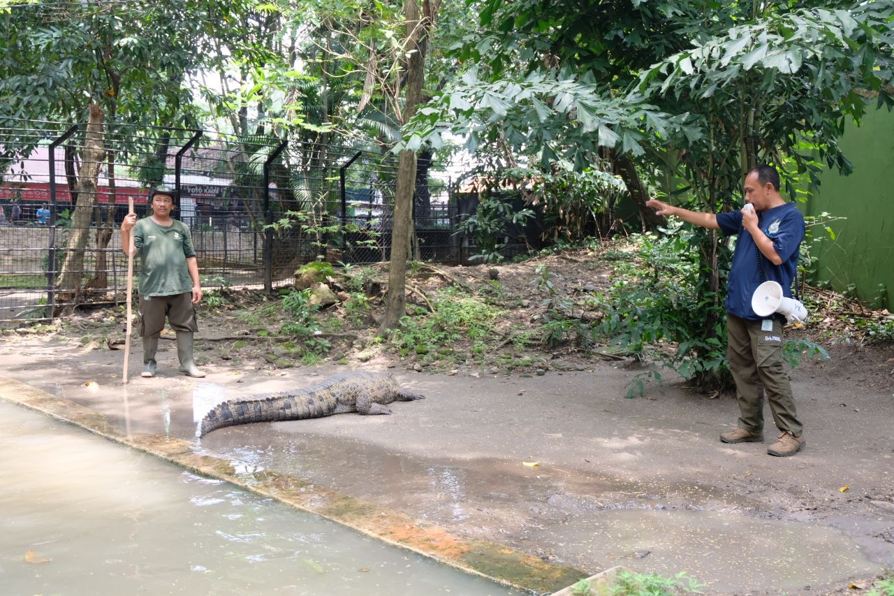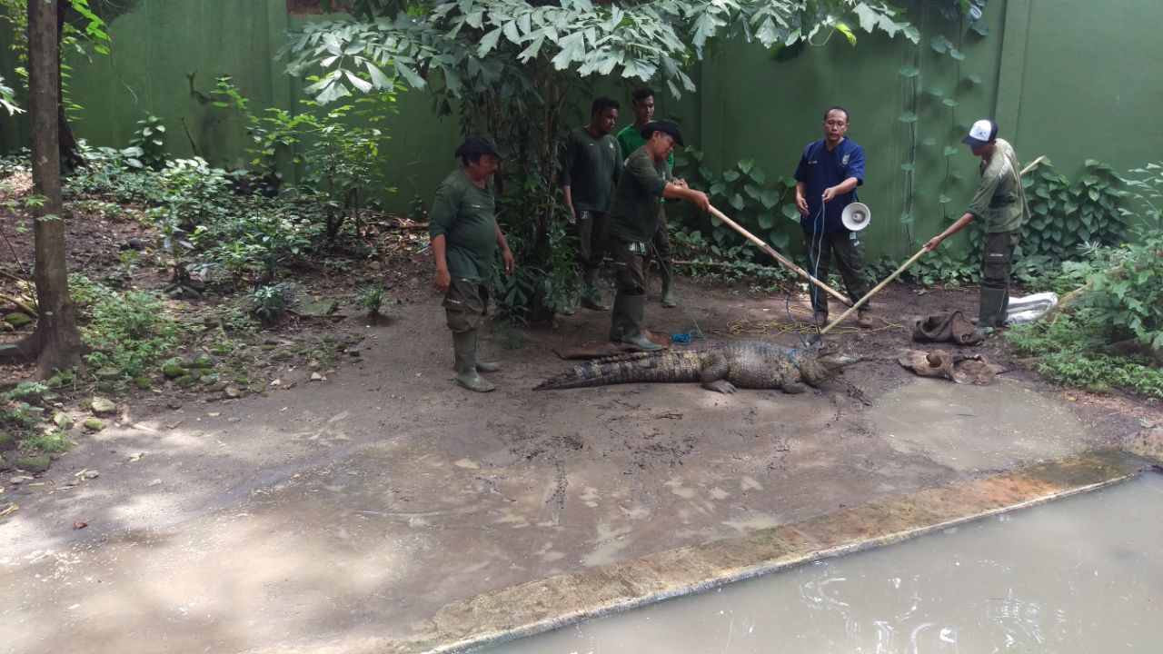 Petugas gabungan juga diajari cara untuk mengevakuasi buaya