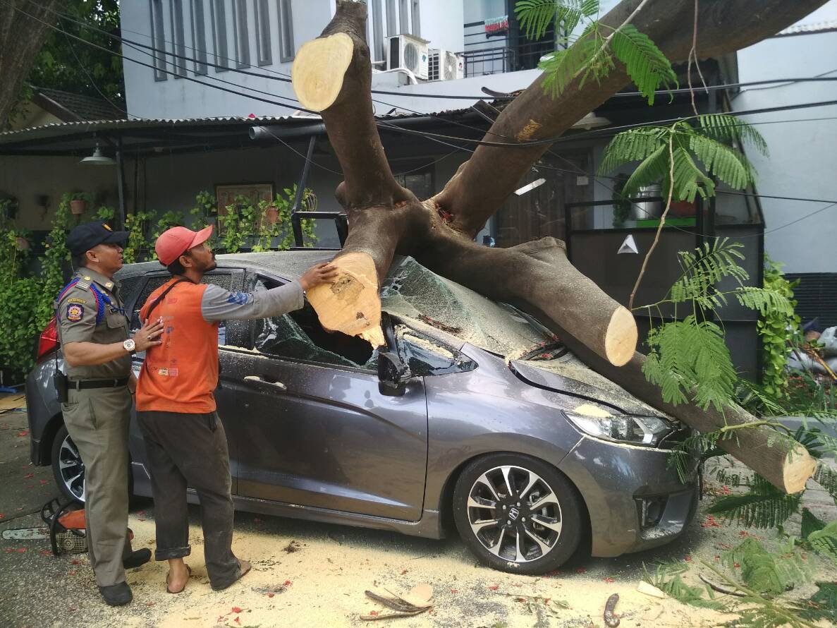 Data dari Satpol PP Surabaya, batang pohon yang sudah keropos ini menimpa sebuah mobil Honda Jazz B 1821 WOK atas nama pemilik M Rizva Adrian (20) yang beralamat di Kebayoran Residence, Jakarta.