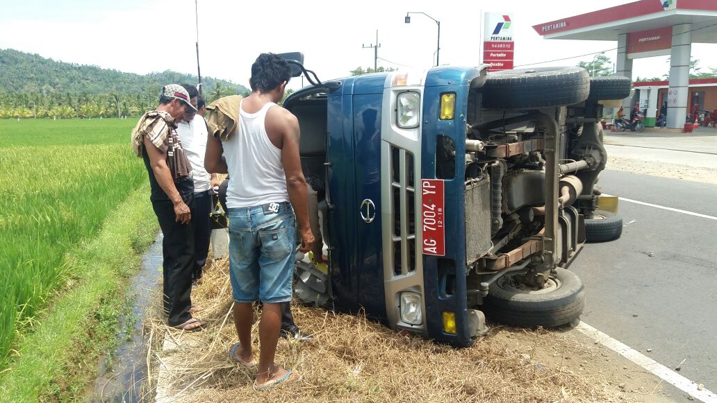 Akibatnya, mobil dinas Pemkab Trenggalek jenis microbus warna biru dengan nopol AG 7004 YP yang disopirinya, terguling menutup Jalan Raya Lintas Selatan Munjungan, Kamis (22/3/2018) siang.