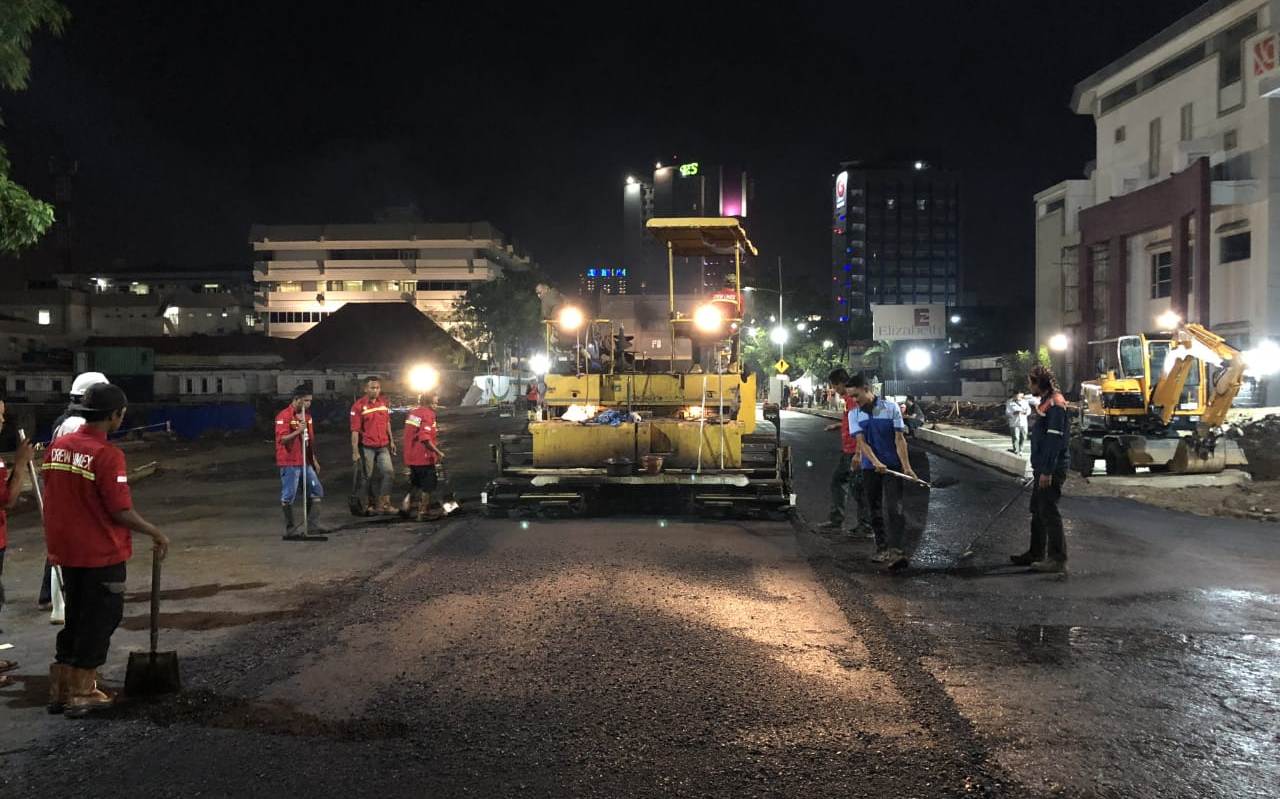 Pantauan jatimnow.com di lokasi, pengaspalan menggunakan aspal padat dimulai sekitar pukul 20.30 Wib. Aspal padat dikerjakan dari sisi timur atau depan Kantor Bank BNI dan Toko Elizabeth.