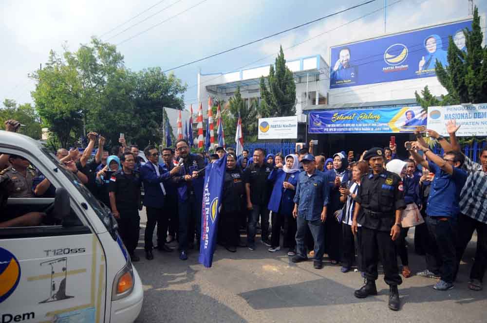 Sekitar pukul 15.00 Wib, 38 armada truk dan sebuah bus berangkat dengan beriringan yang dilepas oleh Ketua Badan Pemenangan Pemilu (Bappilu) NasDem Jatim Ipong Muchlisoni.