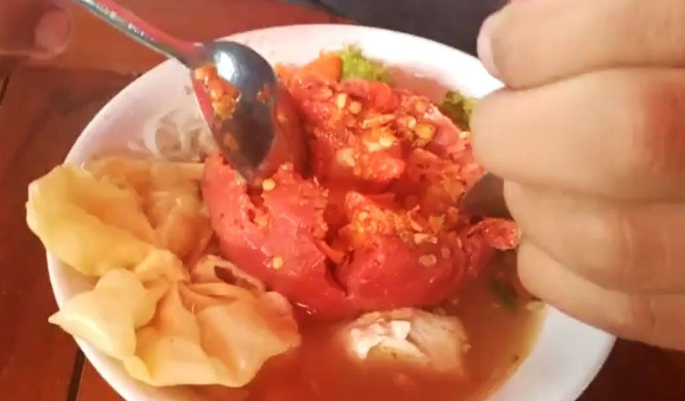 "Rasanya pedesnya luar biasa, tapi gurihnya bakso masih terasa. Gurihnya bakso masih nempel. Di dalamnya juga masih ada baksonya lagi," ungkap pria 24 tahun ini.