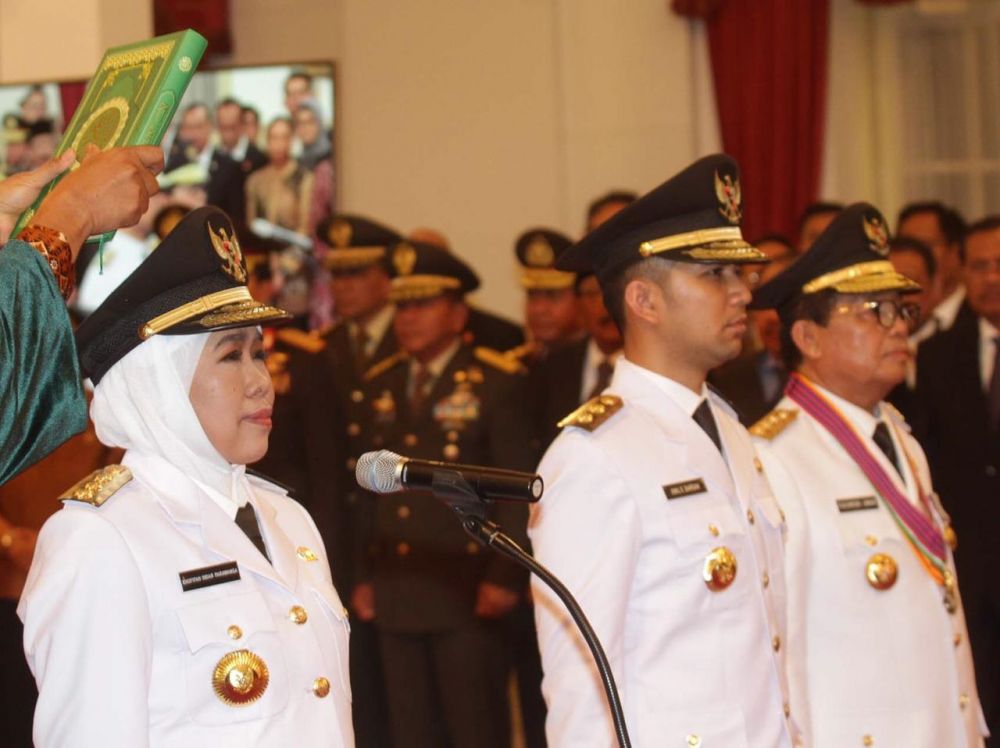 Presiden Joko Widodo melantik Khofifah Indar Parawansa dan Emil Elistianto Dardak sebagai Gubernur dan Wakil Gubernur Jawa Timur 2019-2024.