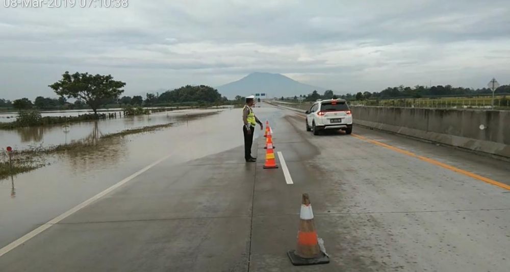 Sehingga, lanjut Bambang, kendaraan yang melintas diarahkan di jalur A (kanan) atau bagian jalan tol yang sudah tidak tergenang air banjir.