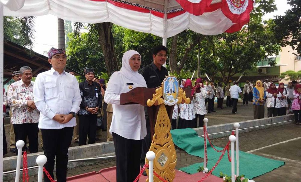 Sebelum menyampaikan sambutannya, Gubernur Khofifah menyempatkan menyalami ratusan pelajar sebelum mereka mulai mengerjakan soal-soal ujian. Gubernur Khofifah juga mendoakan ratusan pelajar yang akan masuk ke kelas.
