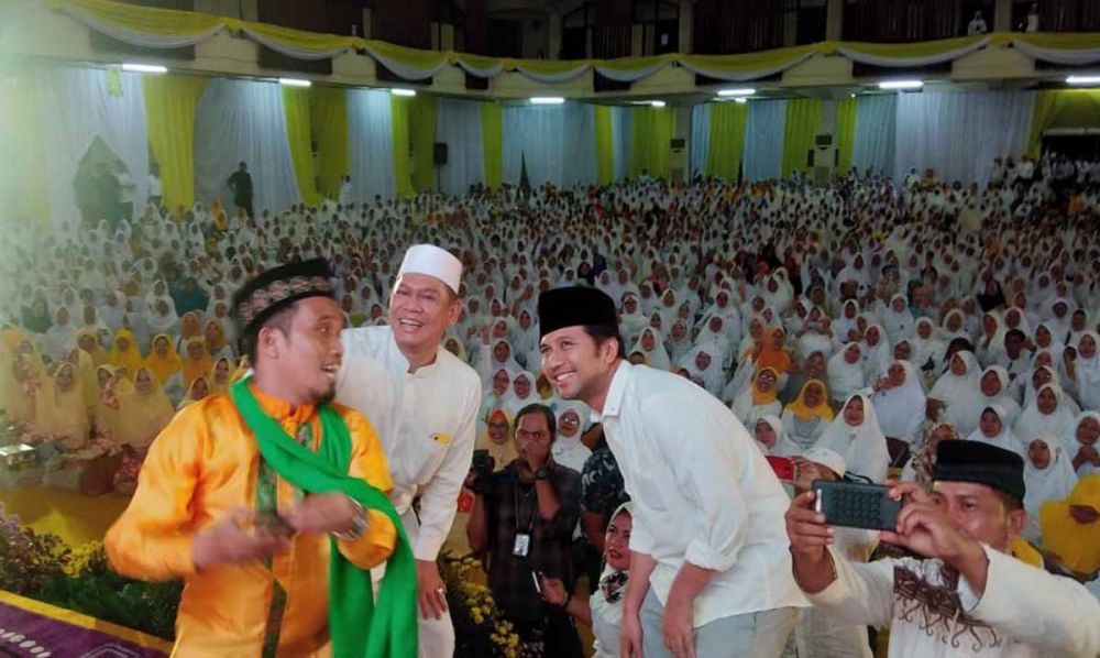 Sebelum istighosah dimulai, relawan Adies Kadir mendapatkan siraman rohani dari Ustad Nur Maulana yang populer dengan slogan 'jamaah oh jamaah'.