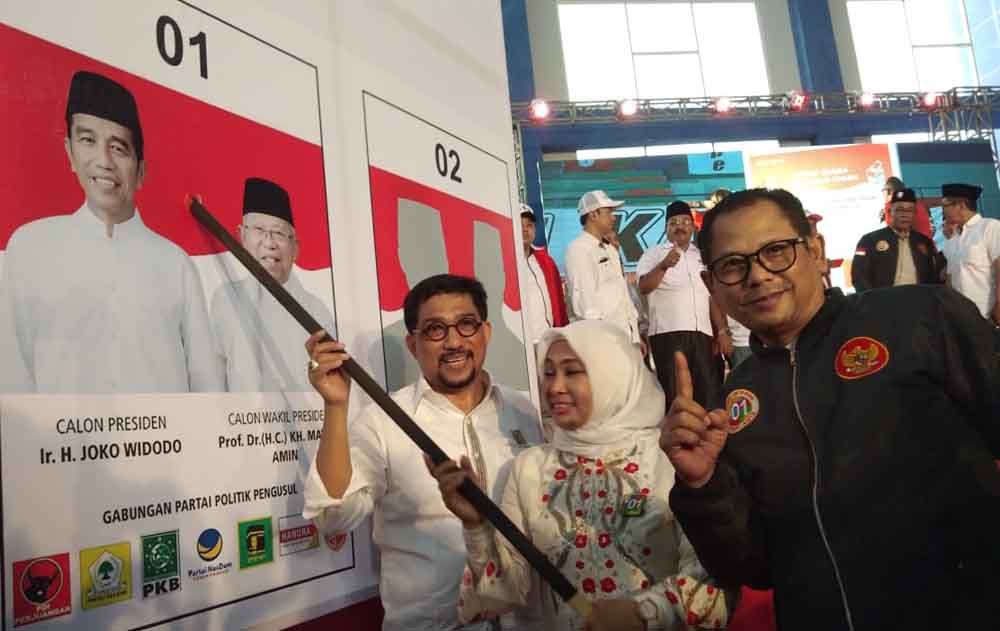 Sebelum acara selesai, Machfud bersama Wabup Kartika serta relawan dan pendukung melakukan simulasi coblos surat suara Pemilihan Presiden (Pilpres) 2019 nomor urut 01 Jokowi-KH Ma'ruf Amin.
