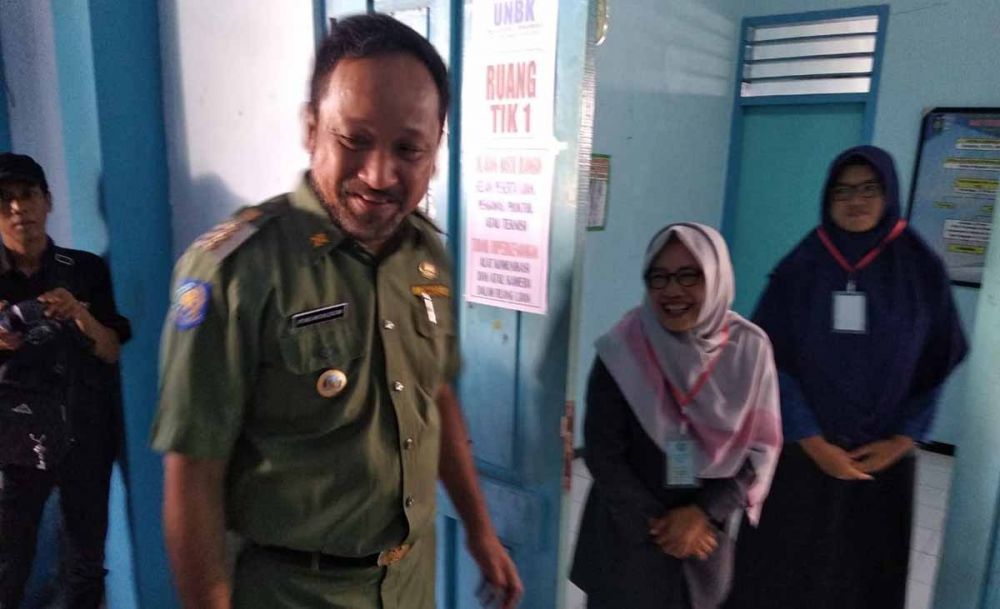 "Semangat ya. Kerjakan dengan teliti dan cermat," kata Bupati Ipong sambil mengacungkan jempol ke para siswa peserta UNBK.