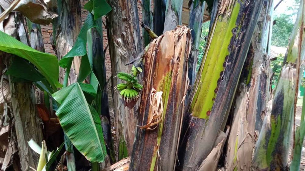 "Tiga bulan lalu, pohon pisang itu saya tebang karena khawatir roboh ke rumah," ujarnya.