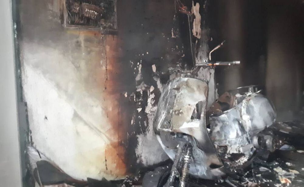 "Kebakaran ini mengakibatkan satu motor Vespa yang berada di lantai 1 terbakar," katanya.