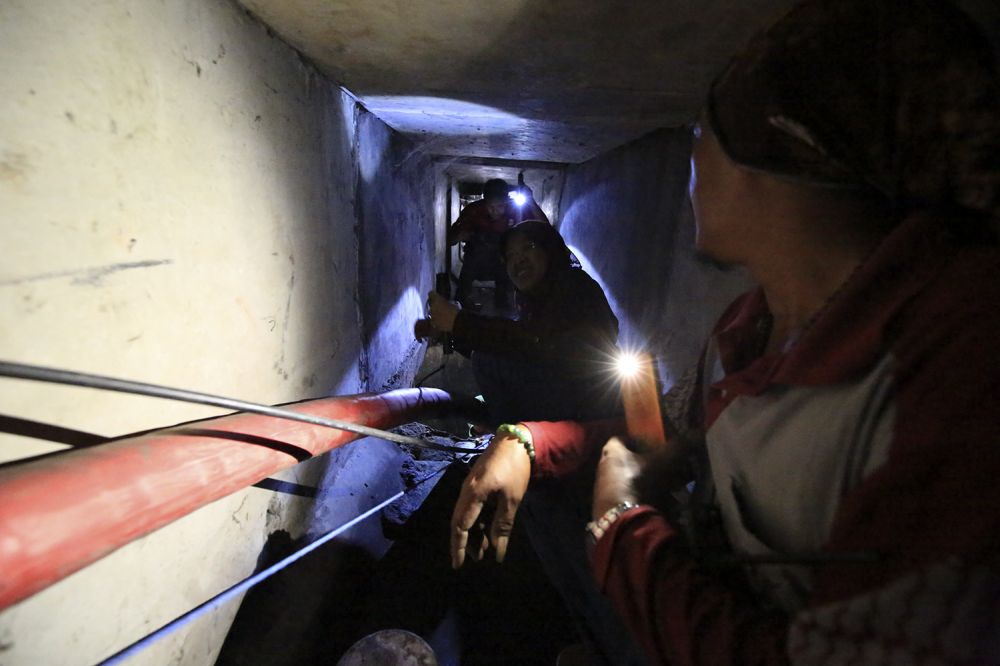 Dalam foto, Erna Purnawati masuk ke saluran bersama Tim Satgas PU.