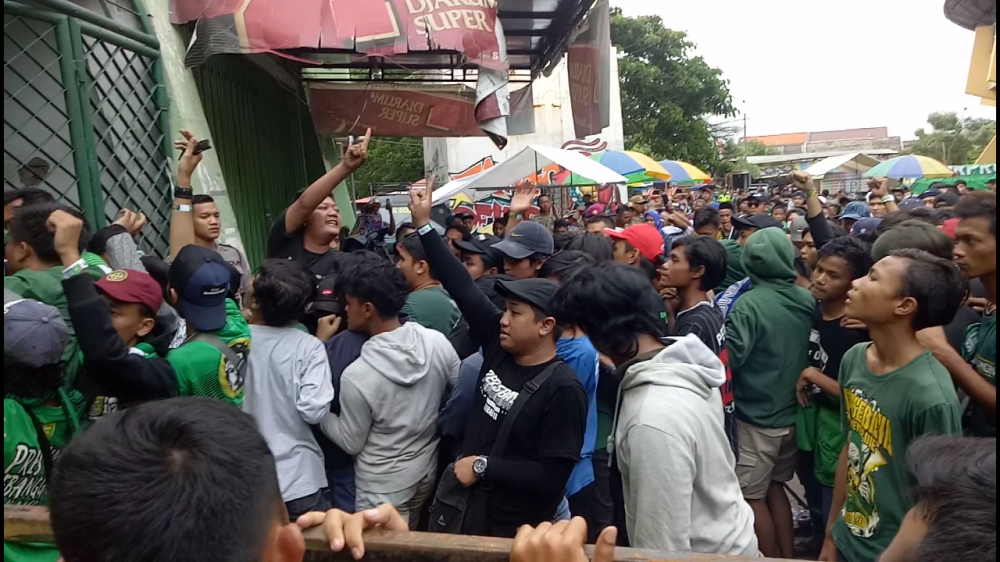 Suporter yang bertiket tersebut dilarang masuk stadion karena telah penuh. Mereka sempat ricuh saat dilarang masuk oleh petugas keamanan.