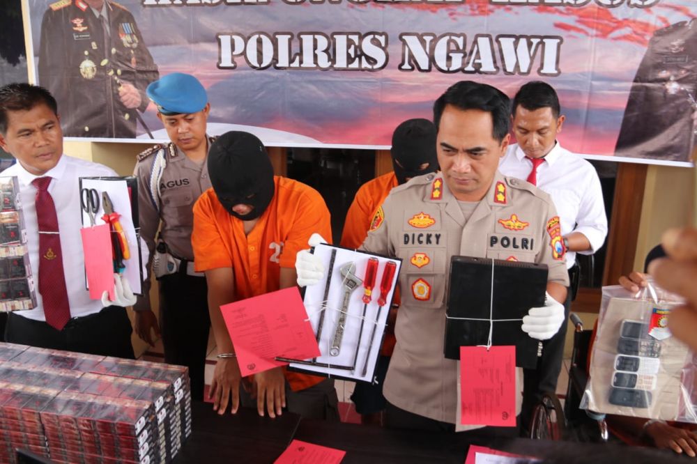 Patroli Senin, 09 Mar 2020 14:17 WIBjatimnow.com - Komplotan pembobol minimarket Alfamart antar provinsi diringkus Sat Reskrim Polres Ngawi. Tiga orang diringkus dan dua diantaranya ditembak di bagian kaki karena melawan.