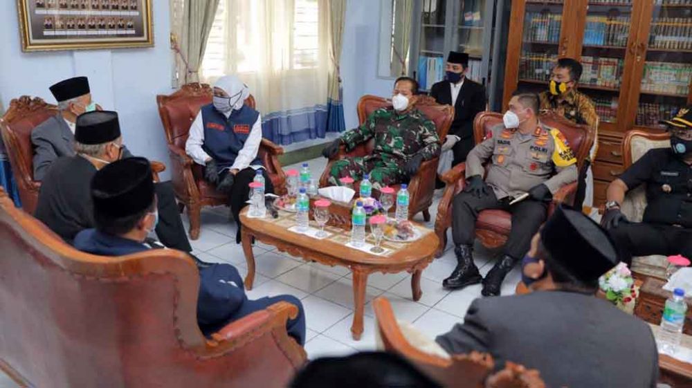 Peristiwa Jumat, 10 Jul 2020 16:49 WIBjatimnow.com - Gubernur Khofifah Indar Parawansa bersama Kapolda Jatim Irjen Pol Muhammad Fadil Imran dan Pangdam V/Brawijaya Mayjend TNI Widodo Iryansyah mengunjungi Pondok Pesantren (Ponpes) Modern Darussalam Gontor 2 di Desa Madusari, Kecamatan Siman, Ponorogo, Jumat (10/7/2020).