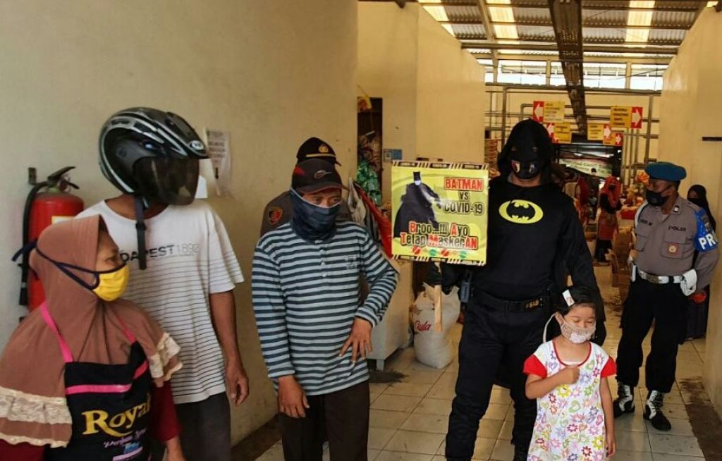"Kalau Batman di layar kaca adalah seorang superhero, tapi Batman disini kita analogikan 'Broo.. Ayo Tetap Maskeran'. Super hero yang memutus penyebaran Virus Covid-19," jelas Kapolsek Sukorejo, AKP Sukiyanto, Selasa (22/9/2020).