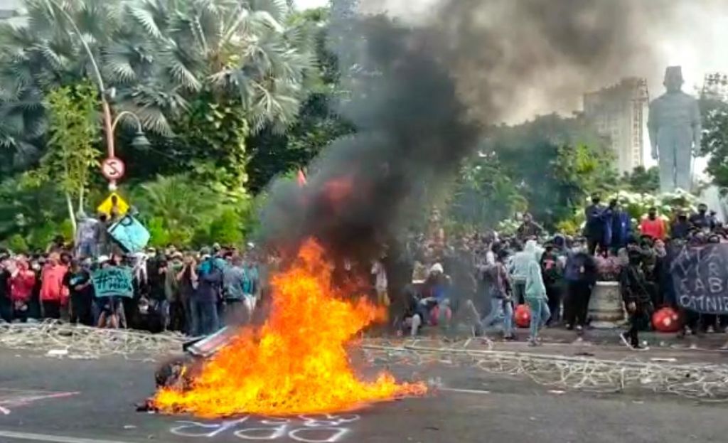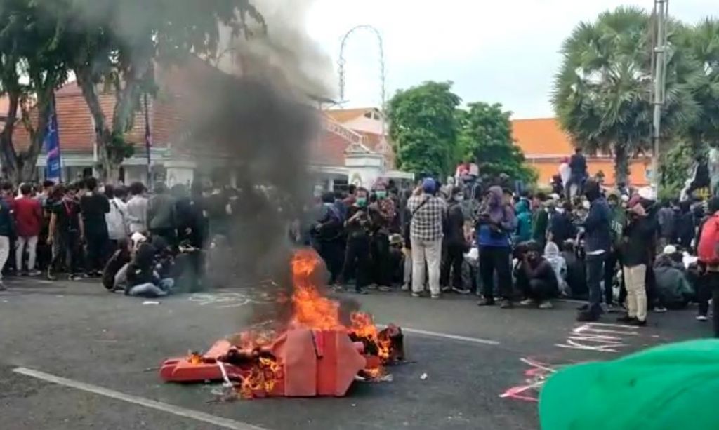Tolak Omnibus Law di Surabaya: Rusak Perangkat CCTV hingga Bakar-bakar