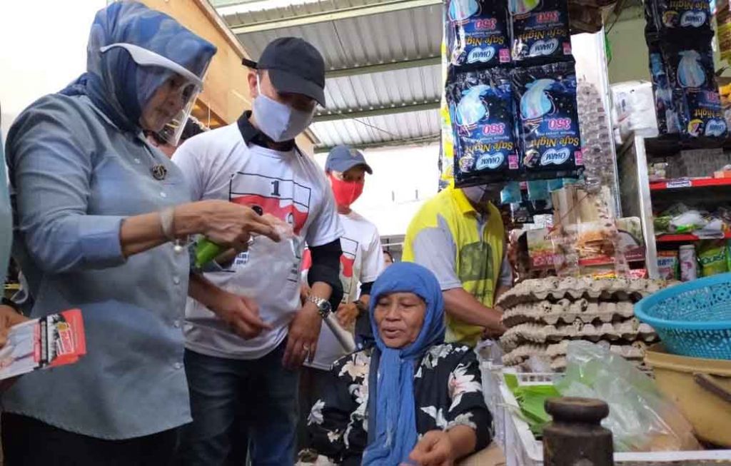 Blusukan yang dilakukan Ketua Dharma Wanita Persatuan Dinas Pendidikan Provinsi Jatim ini didampingi oleh para relawannya yang tergabung dengan relawan Kompak sembari mensosialisasikan pelaksanaan pilkada pada 9 Desember 2020 mendatang serta meminta dukungan kepada pedagang pasar.