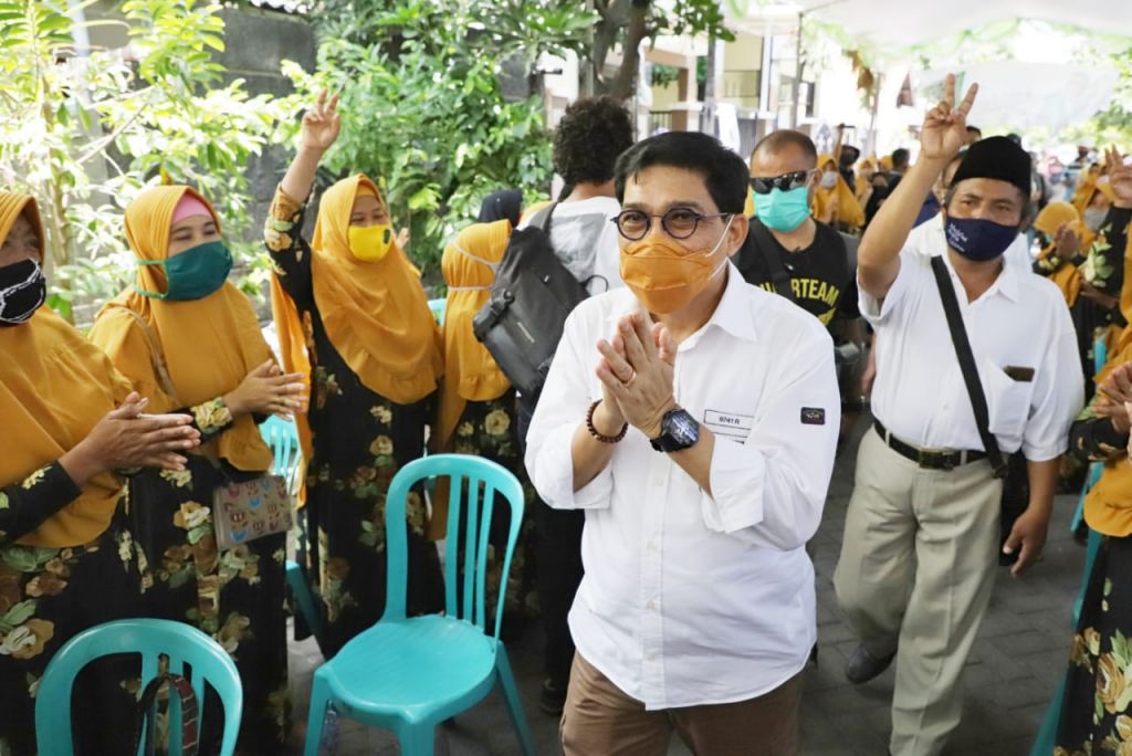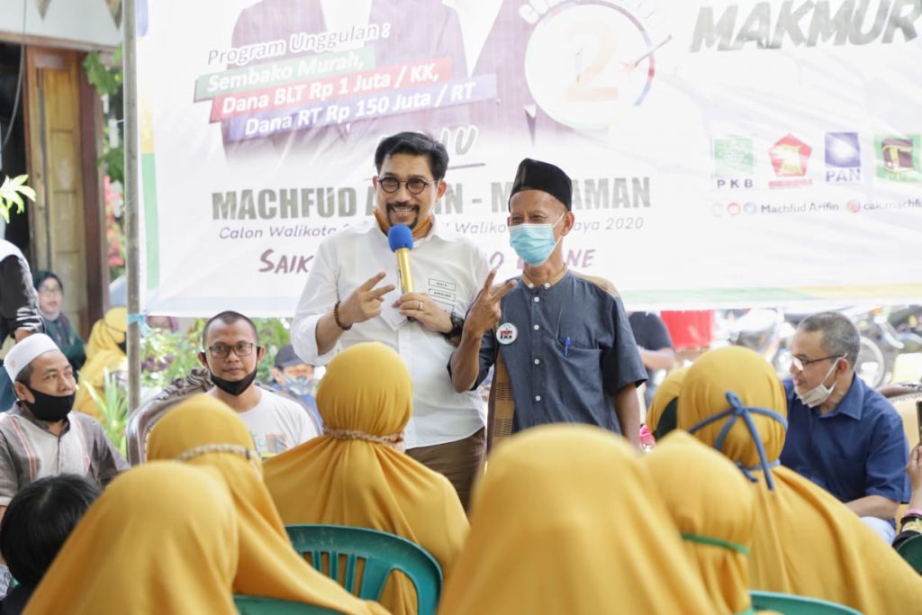 Politik Selasa, 13 Okt 2020 16:18 WIBjatimnow.com - Calon Wali Kota Surabaya, Machfud Arifin menyapa warga Demak Jaya, Kelurahan Tembok Dukuh, Kecamatan Bubutan, Surabaya, Selasa (13/10/2020).