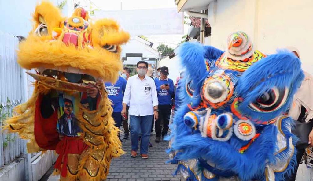 Saat tiba di lokasi, warga sangat antusias menyambutnya. Bahkan, dua liong barongsai mengawal kehadiran pemimpin yang dikenal peduli dengan masyarakat itu.