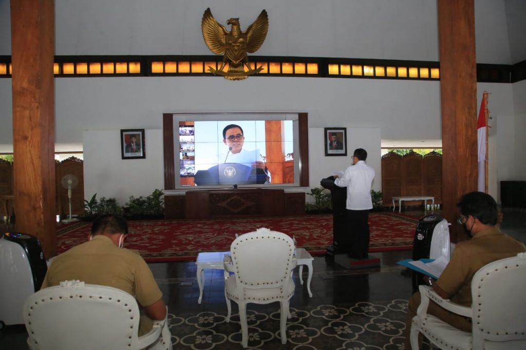 Anas hadir dalam forum rapat paripurna virtual tersebut melalui sambungan video conference dari pendapa Sabha Swagata Blambangan.