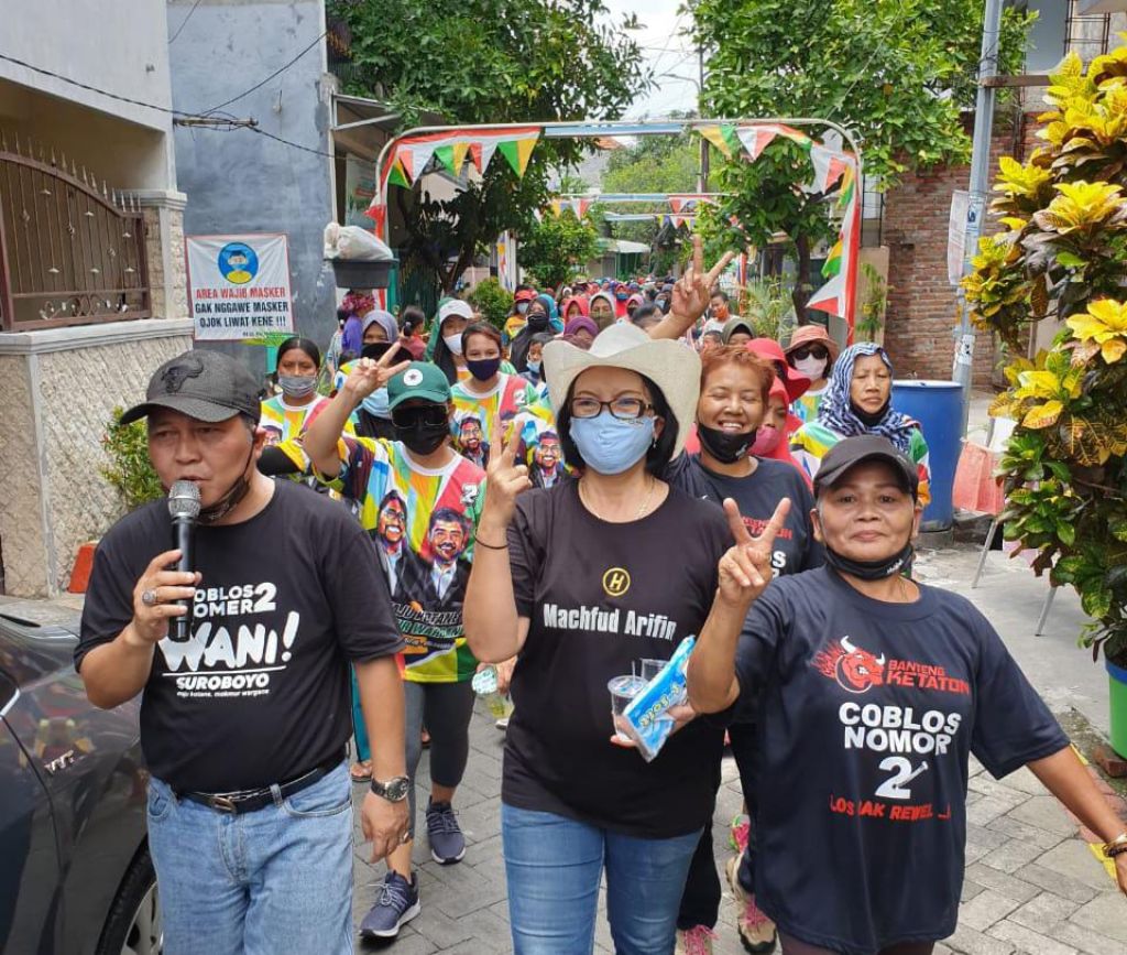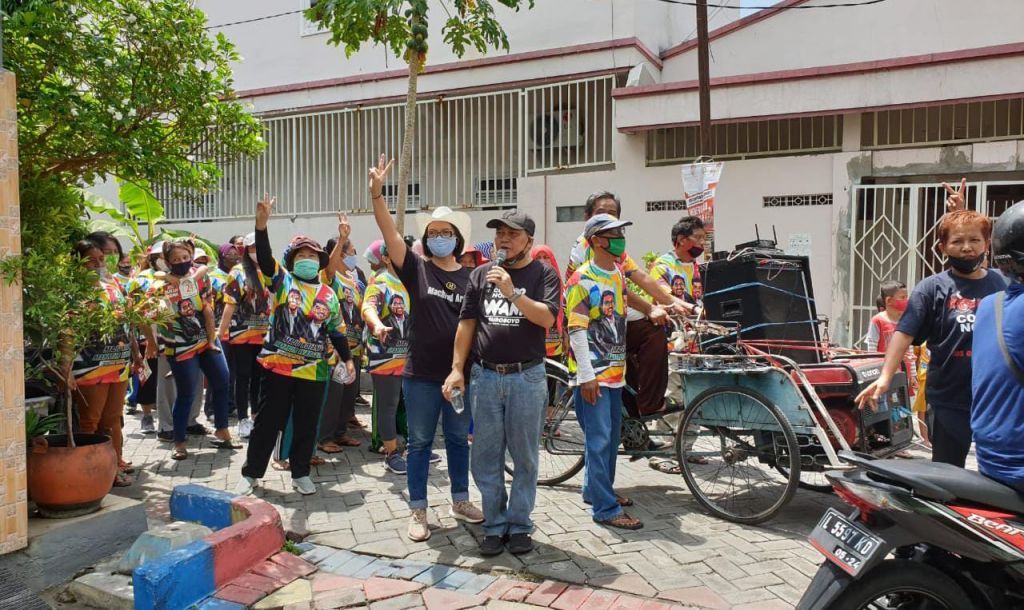Di bawah komando Anugrah Ariyadi politisi yang pernah duduk sebagai anggota DPRD Surabaya itu, seribu emak-emak berkumpul dan keliling kampung, Jumat (5/12/2020) siang.