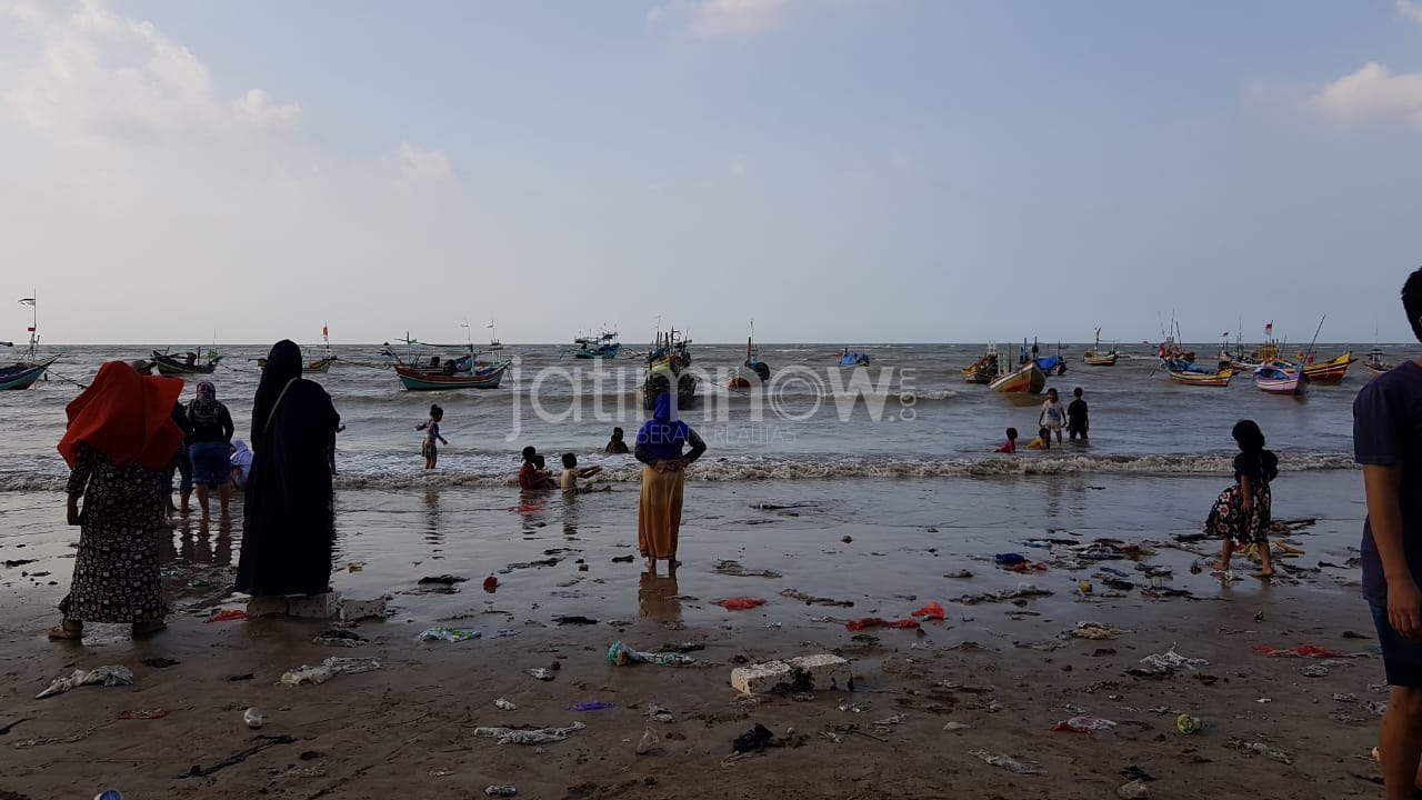 Sayangnya, pantai yang tak jauh dari kota Tuban ini penuh sampah plastik yang dibawa ombak.
