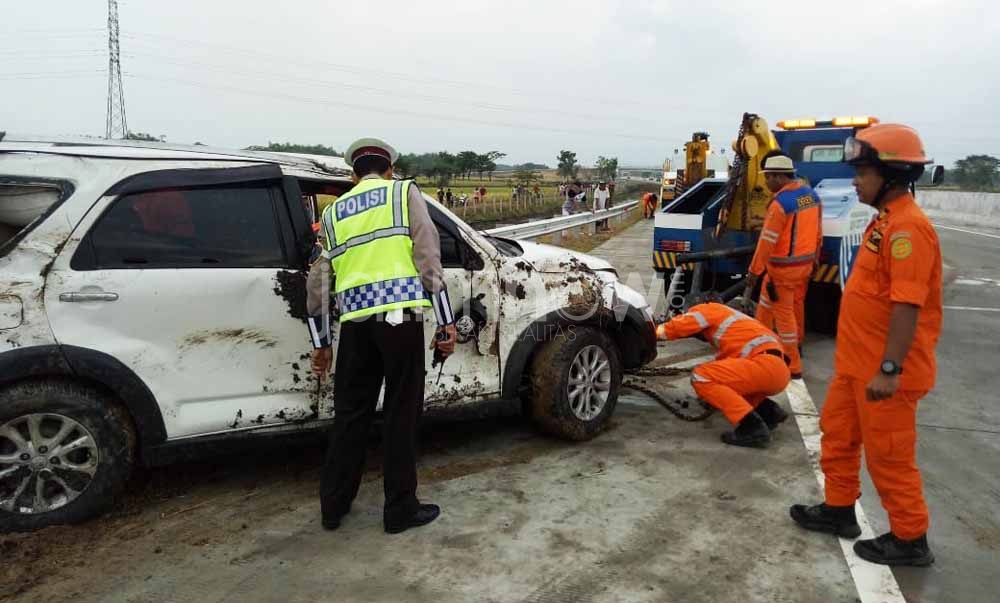 Oleng, Daihatsu Terios Terguling di KM 599 Tol Wilangan-Ngawi