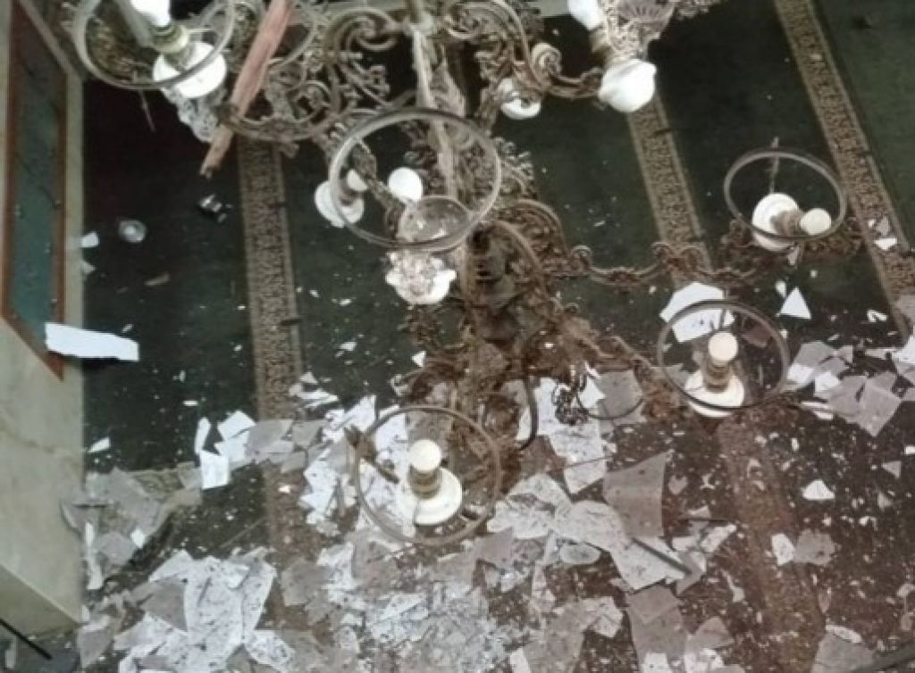 Nampak atap masjid rusak parah, genting, asbes, dan lampu hias berukuran besar pun jatuh ke lantai. Untung saja saat kejadian tidak ada orang di lokasi, sehingga tidak sampai menimbulkan korban jiwa.