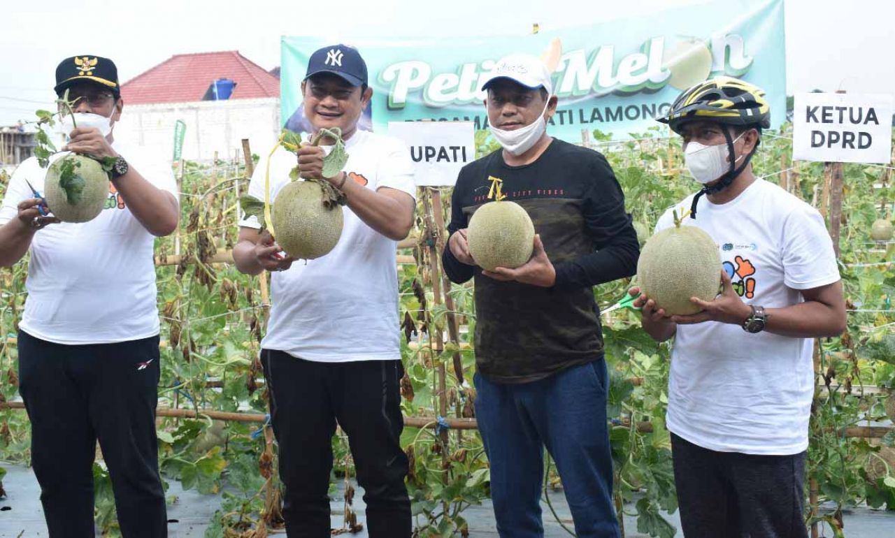 Bupati yang akrab di sapa Pak Yes itu memetik melon bersama Ketua DPRD Lamongan Abdul Ghofur, Wakil Bupati Abdul Rouf, dan Sekda Moh. Nalikan.
