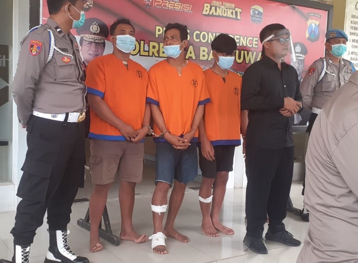 "Keenam pelaku yakni ME (22) dan LH (24) asal Kabupaten Jember. Kemudian TR (20), RG (26), HP (20), satu lagi AHS (16) masih di bawah umur. Mereka dari Kabupaten Lumajang," kata Kapolresta Banyuwangi AKBP Nasrun Pasaribu, Rabu (22/12/2021).