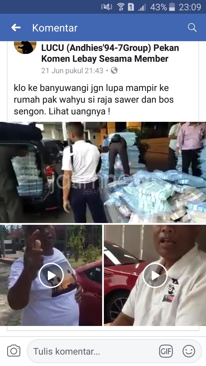 Viral Minggu, 01 Jul 2018 23:34 WIBjatimnow.com - Netizen beberapa hari ini dihebohkan beberapa video pendek yang menceritakan seorang warga yang disebut super kaya raya. Kabart pria kaya ini kabarnya asal Banyuwangi, Jawa Timur beredar di media sosial.