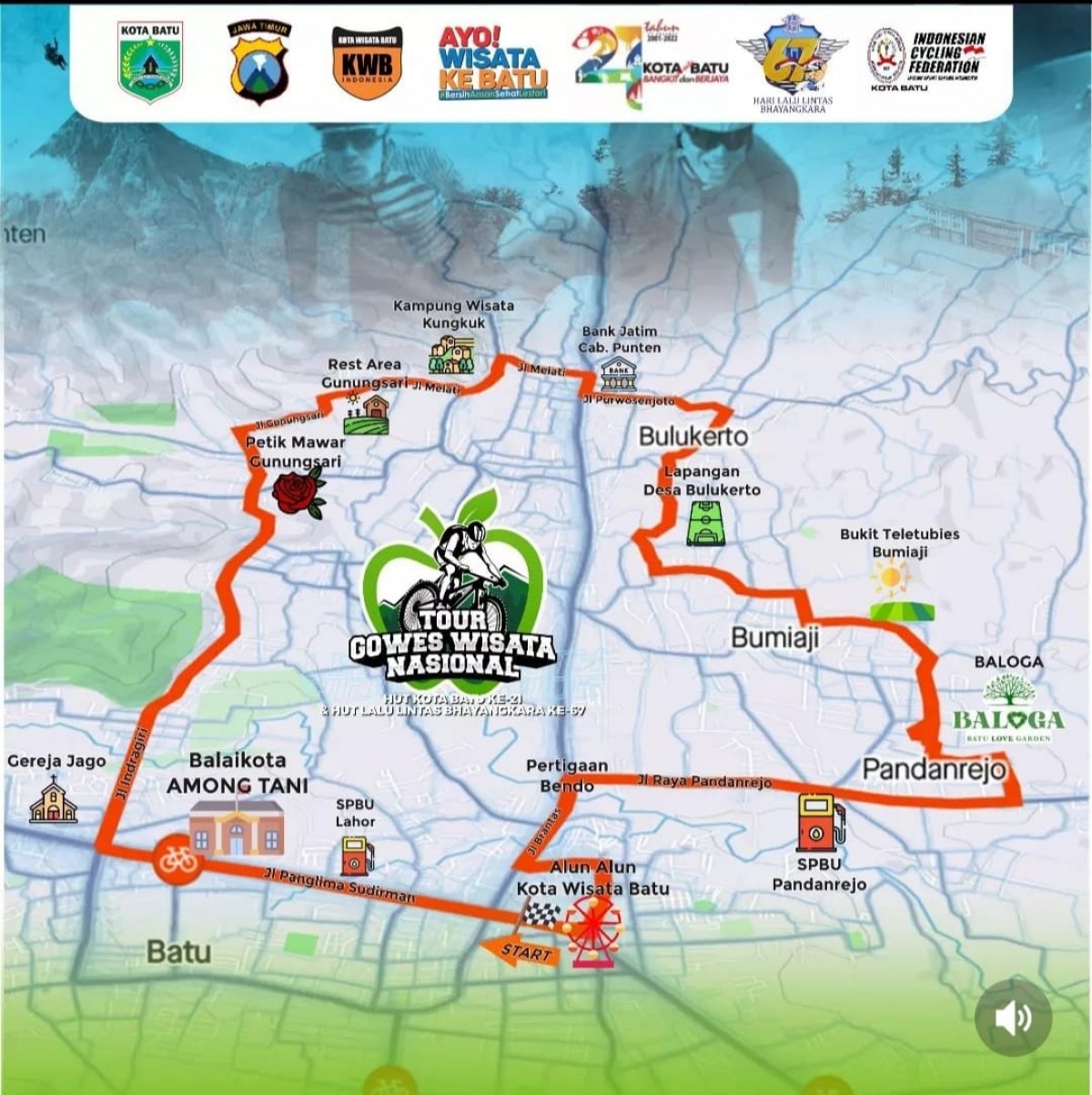 "Kegiatan ini tentunya sudah dinanti-nanti para pencinta olahraga bersepeda. Peserta akan melewati beberapa jalur yang menyuguhkan pemandangan alam khas Kota Batu dan melewati beberapa destinasi wisata di desa wisata Kota Batu," ungkapnya, Sabtu (17/9/2022).