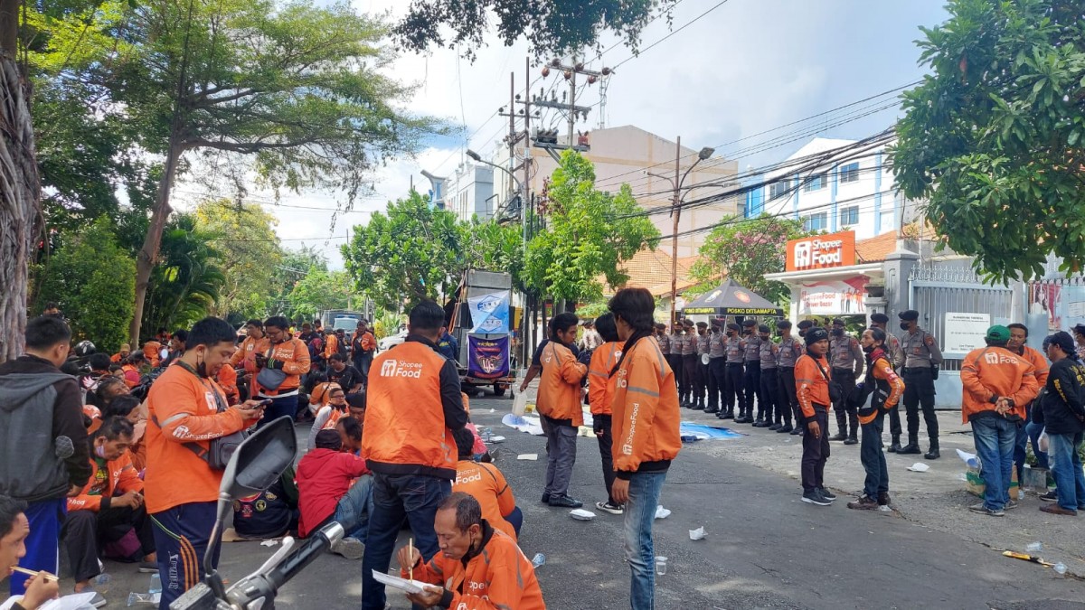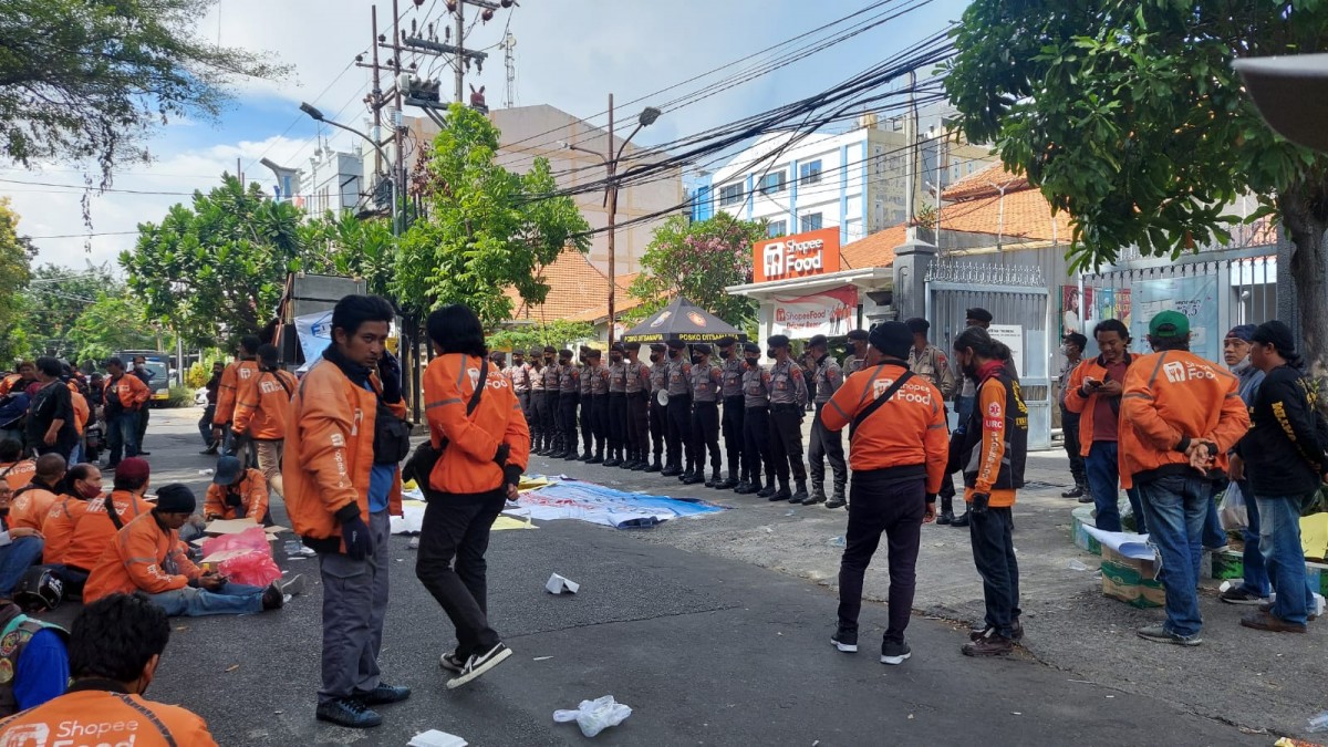 Foto: Geruduk Kantor Surabaya, Ratusan Mitra Shopee Ancam Menginap