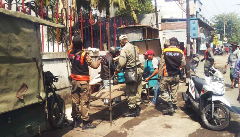 Tak hanya membongkar 11 bangunan semi petrmanen saja, petugas juga menertibkan PKL yang berada di wilayah tersebut.