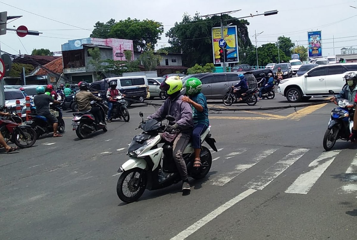 Para pengendara roda dua harus menundukkan kepalanya dan ada satu orang yang menaikkan kabel untuk dapat melintas kabel itu. Arus lalu lintas sempat tersendat akibat peristiwa tersebut.