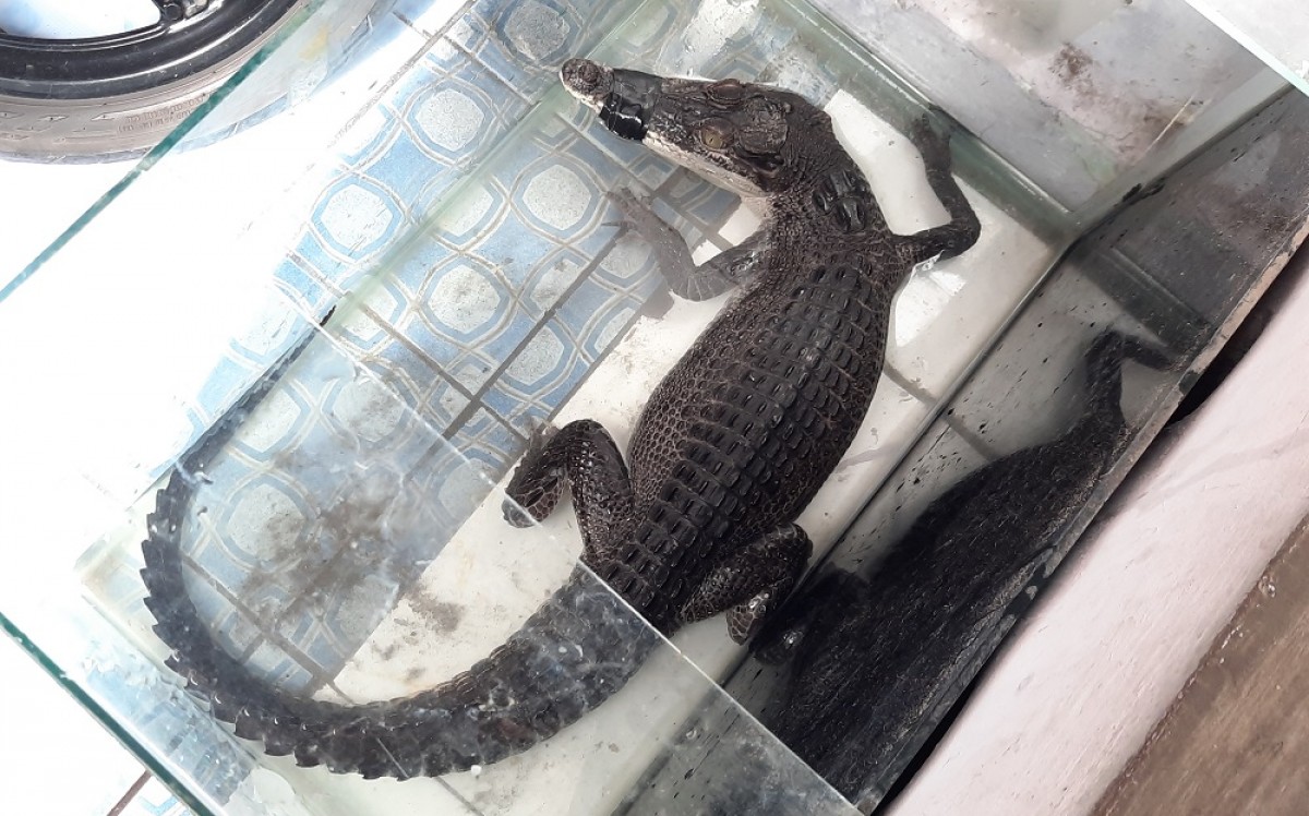 Sementara itu, orang yang penangkap buaya, Muhammad Purwanto menjelaskan, buaya itu sudah ditangkap tiga hari lalu dan saat ini dimasukkan ke akuarium.