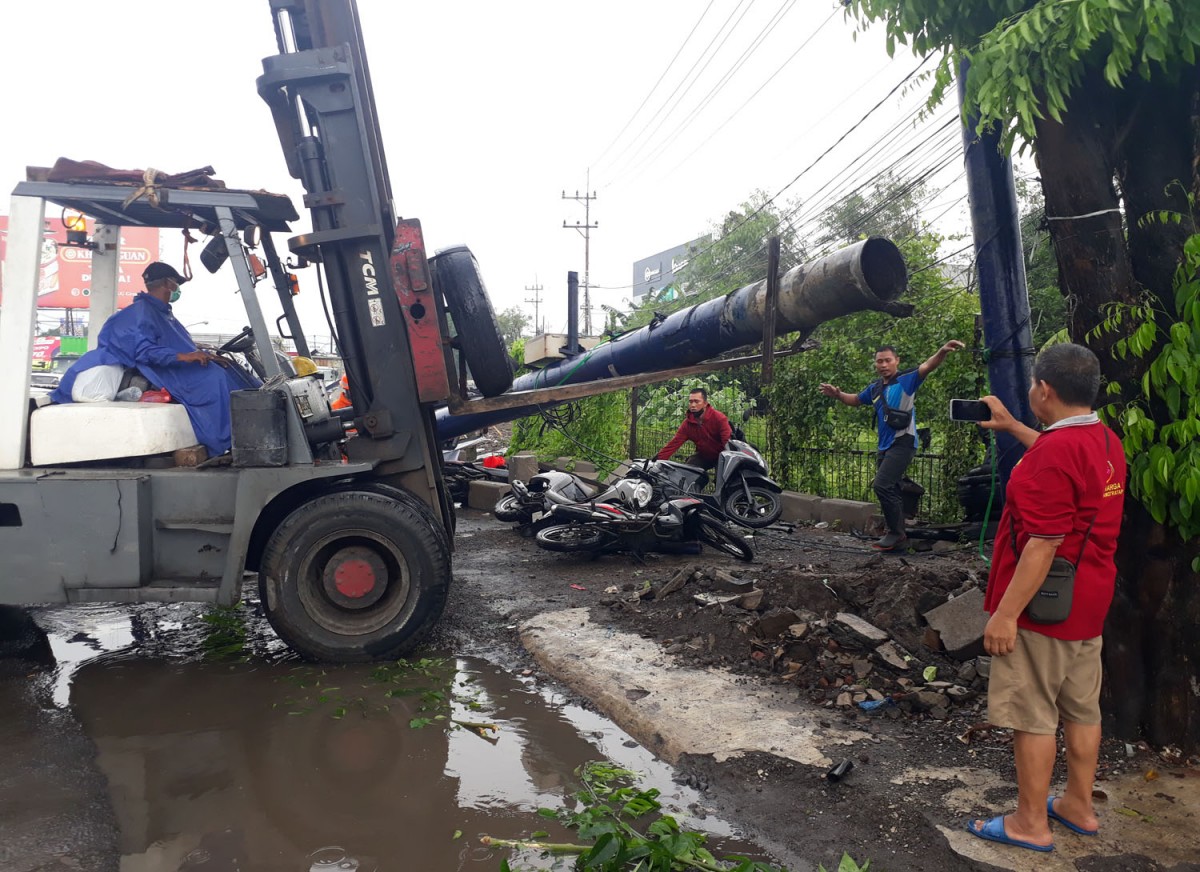 Robohnya papan reklame tersebut diduga akibat terjangan hujan deras disertai angin kencang pada Senin (28/11/2022). Reklame itu menimpa empat motor dan sebuah mobil pikap.