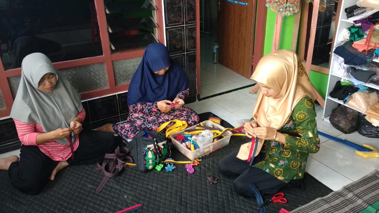 Saat itu, Yeni terlihat membuat hiasan bunga dari resleting yang akan ditempel di produknya. Satu pekerja sedang sibuk menggabungkan resleting yang berbeda warna.