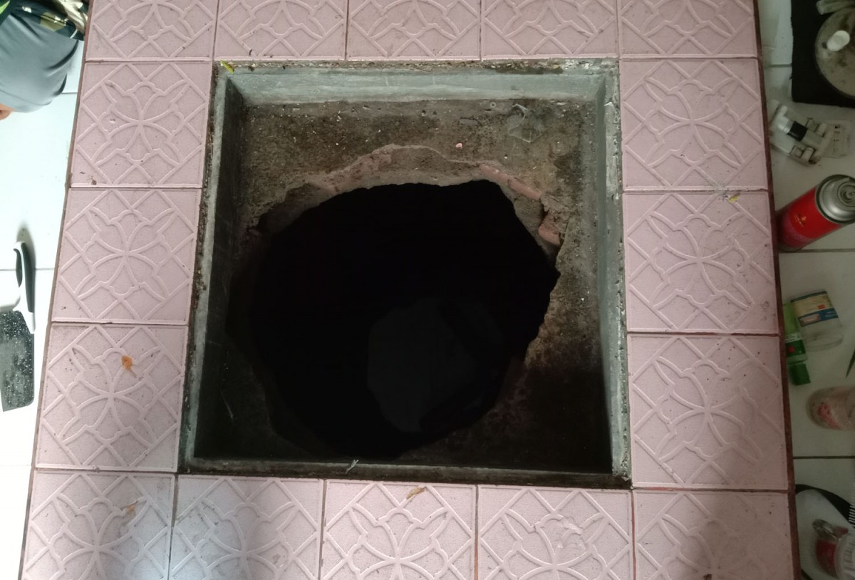 Setelah plesteran dibuka, ada sebuah lorong sedalam kurang lebih 2 meter yang menyemburkan air.