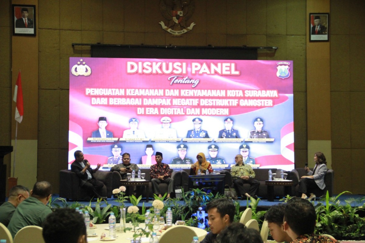 Diskusi panel yang diinisiasi Kapolrestabes Surabaya, Kombes Pol Akhmad Yusep Gunawan ini juga menghadirkan beberapa pakar yang kompeten dalam berbagai bidang, serta dimoderatori Ketua Pusat Transformasi dan Pembangunan Pasca Sarjana Unair, Suko Widodo.