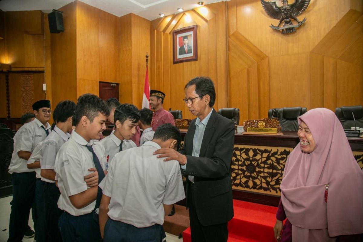 Kemudian, para siswa SMP Al-Falah diajak ke ruang rapat paripurna. Rombongan diterima Ketua DPRD Kota Surabaya, Adi Sutarwijono.